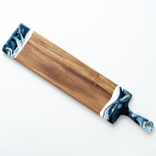 This board blends gorgeous Acacia hardwood and an eco-friendly epoxy to create a one-of-a-kind piece of serveware for your home.